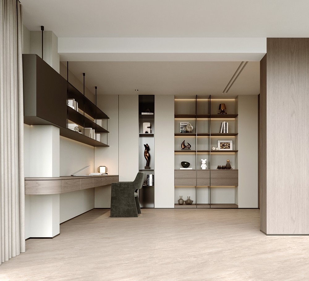 以優雅的暖灰色澤作為空間基底,賦予空間深厚的歲月感與無盡的故事感,融合了旖旎璀璨的大理石肌理,彰顯出奢華而不失細膩的經典之美。